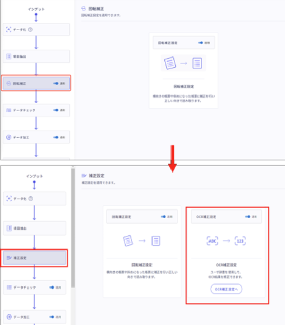 従来の「回転補正」に加え、「OCR補正」のご利用が可能になりました。
