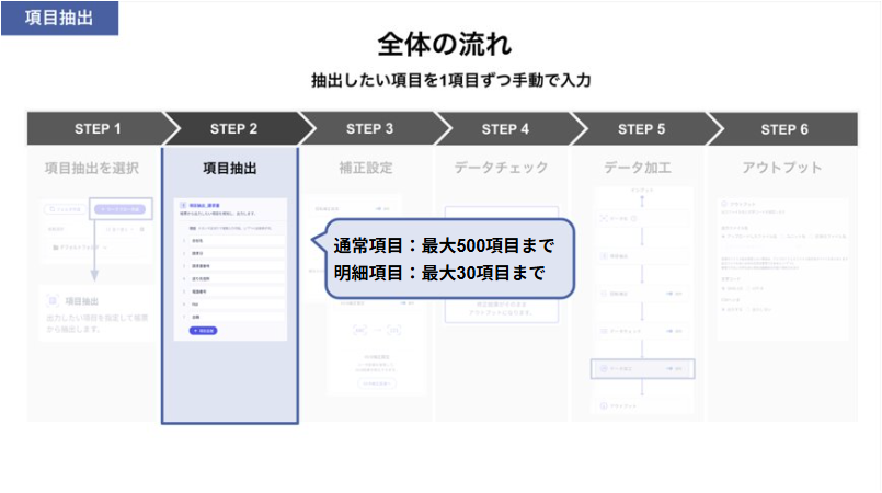項目抽出と項目選択の設定全体の流れはほぼ同じです。