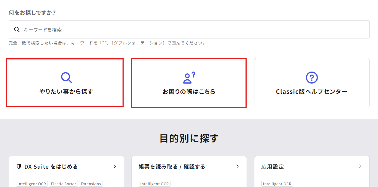 TOP画面にて、目的別にヘルプ記事を検索できるようになりました。