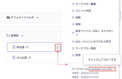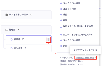 [ワークフローID]クリックすると36桁の文字列をコピーできます。 |