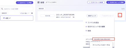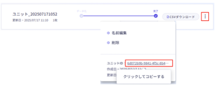 [ユニットID]をクリックすると36桁の文字列をコピーできます。