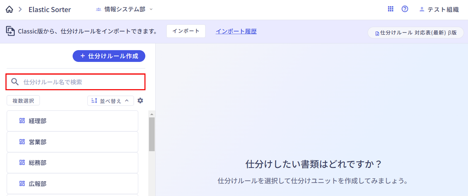 これにより、目的の仕分けルールを探す手間を削減します。