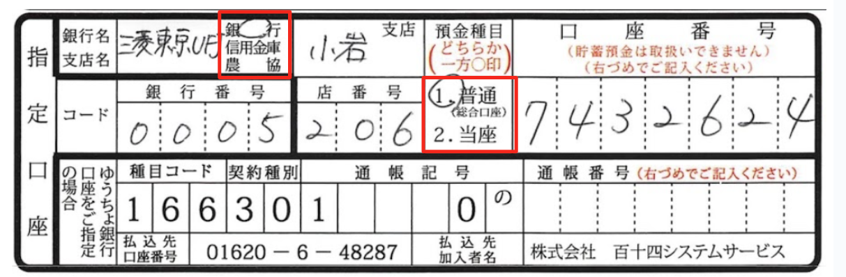以下のような丸(〇)を記入するチェックボックスにて、丸の形が歪んだり、四角などの別の形が記入された場合、正しく読み取れない場合があります。