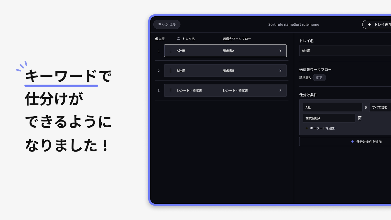 【一部ユーザ様対象】Elastic Sorter 新機能「キーワード仕分け」の先行リリース