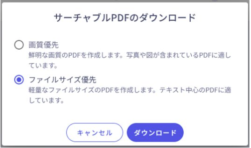 全文読取の読取ユニットにて、サーチャブルPDFをダウンロードする際、PDFの品質を選択するポップアップが表示されます。