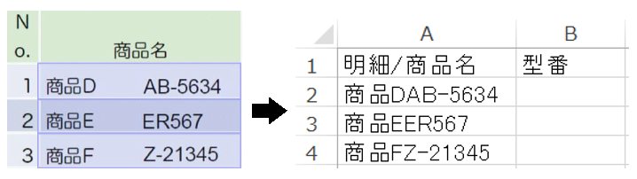 以下のように、「商品名」と「型番」を別々の列に出力することが可能です。