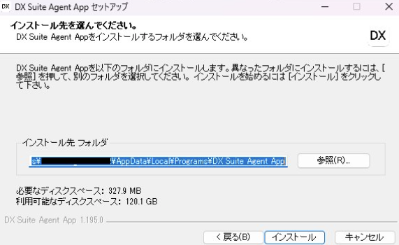 インストール先フォルダを選択し、「インストール」をクリックします。
