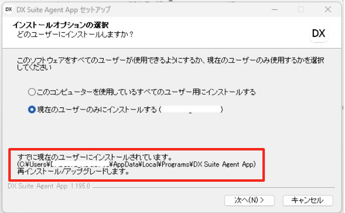”インストールオプションの選択"画面で既にインストール済であることが表示されます。