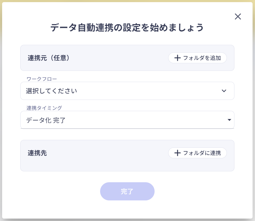 完了ボタンをクリックすることで、「データ自動連携」の設定が完了します。