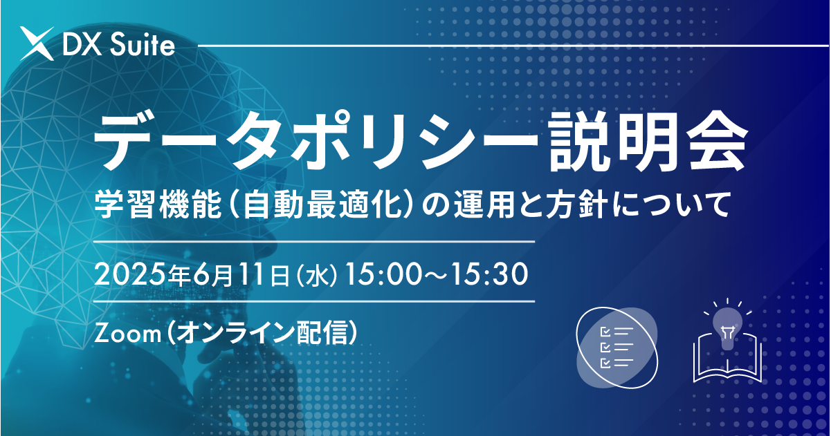 本説明会は、DX Suite をご利用中のお客様、およびパートナー企業様を対象としており、データの取り扱いや自動最適化機能に関するご理解を深めていただける内容となっております。ぜひご参加をご検討ください。