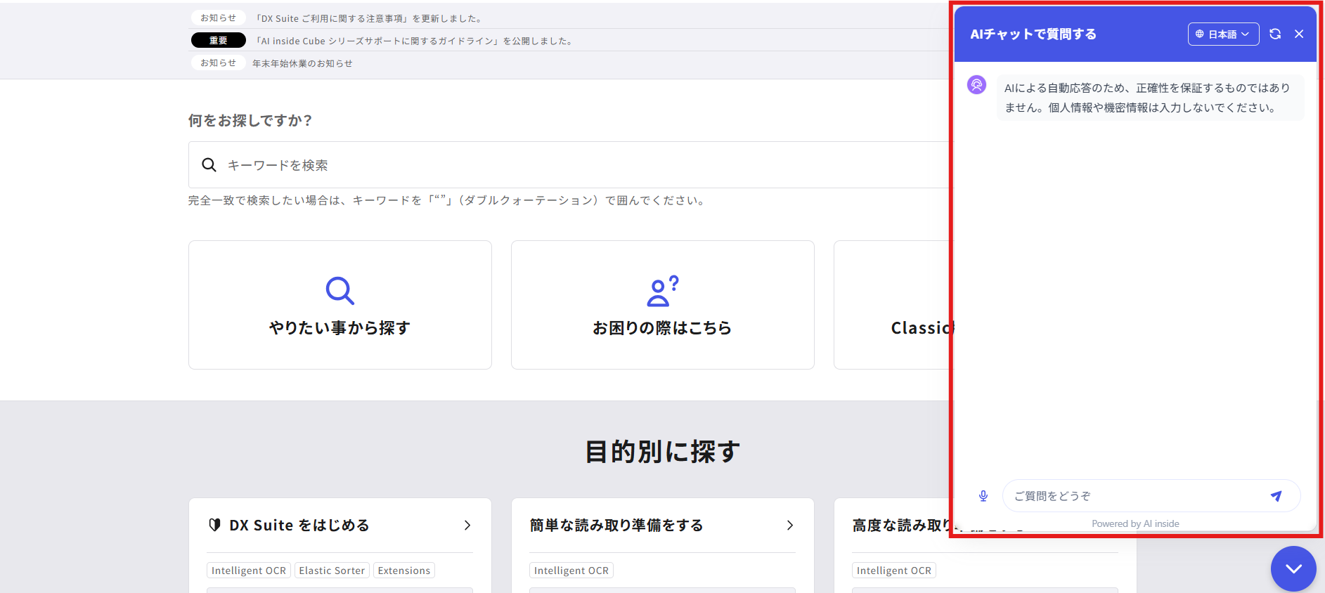 AIチャットが、お客様の課題解決をより迅速にサポートできるよう努めてまいります。皆様のご利用とフィードバックをお待ちしております。